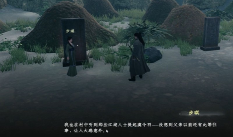 完成线索收集后,任务进入场景探索阶段。玩家需前往云鹤村后山,后山入口位于村落北侧,沿着石阶小路向上攀登。途中需留意两侧的地形特征,按照村长描述的双松伴墓线索寻找目标。当看到两颗树干粗壮、枝叶交错的老松树时,靠近后便能发现树下立着一块青灰色墓碑,墓碑上清晰刻有虞令羽之墓的字样,此处便是祭拜之人任务的核心交互点。