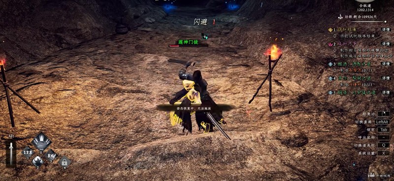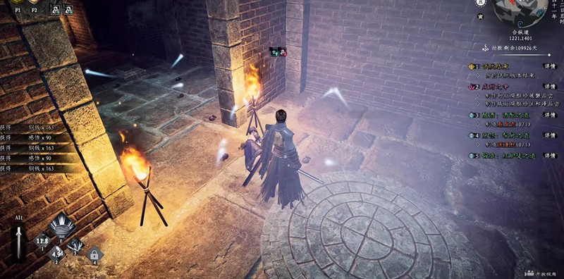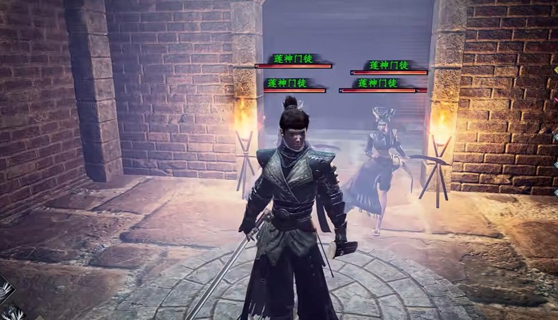 看到门徒后,需要将他们全部击败。建议使用控制技能起手,优先解决攻击较高的远程门徒。战斗时注意躲避他们的合击技能,保持移动减少受到的伤害。击败所有门徒后,空地中央会出现一个暗门入口。此时需要使用特定方式打开暗门,推荐使用长枪武器的普通攻击连招攻击地面暗门区域。连续攻击数次后,地面会塌陷,露出向下的阶梯通道。