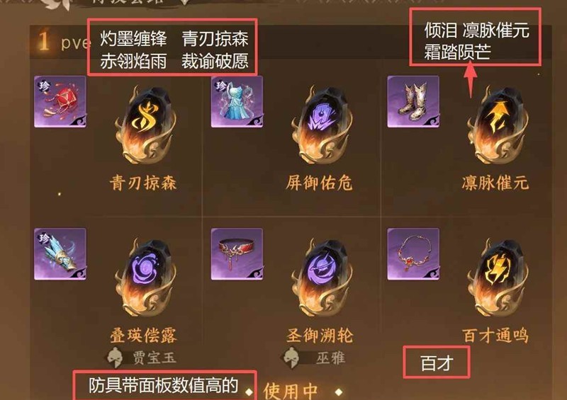 防具:防具随便打三个数值高的即可