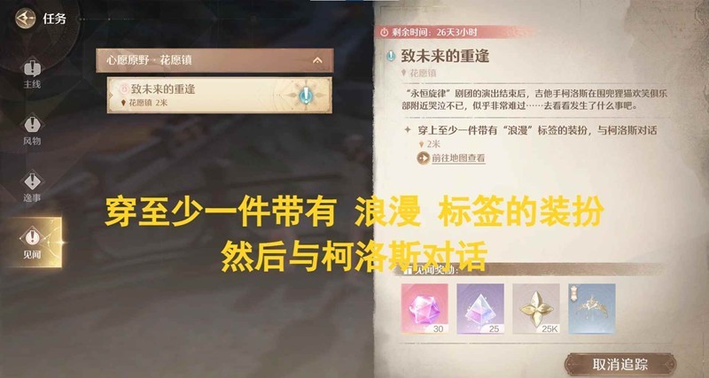 穿上至少一件带有 浪漫 标签的装扮,然后与柯洛斯对话;