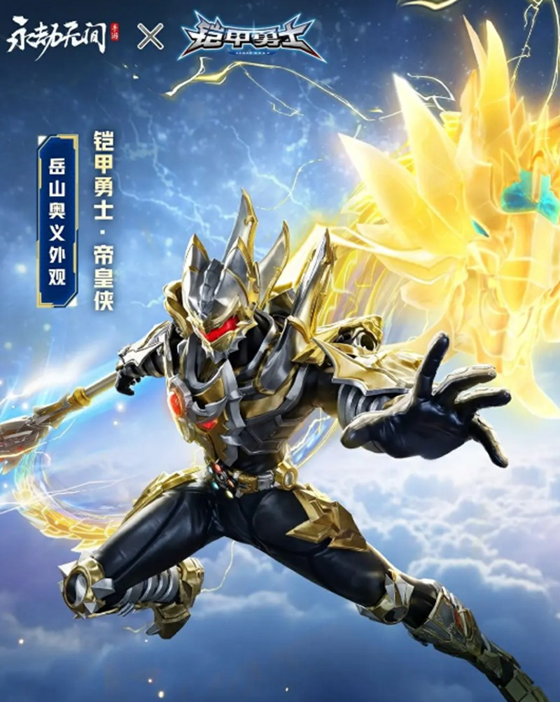 永劫无间手游的铠甲勇士联动活动中,帝皇铠甲作为核心角色回归。玩家可以体验到岳山穿戴金色铠甲的造型,整体设计充满力量感。无论是战斗中的动作还是特效表现,都让人感受到那份熟悉的英雄气息。特别是“帝皇铠甲合体”时的视觉效果,金光四射、五行合一,极具冲击力。