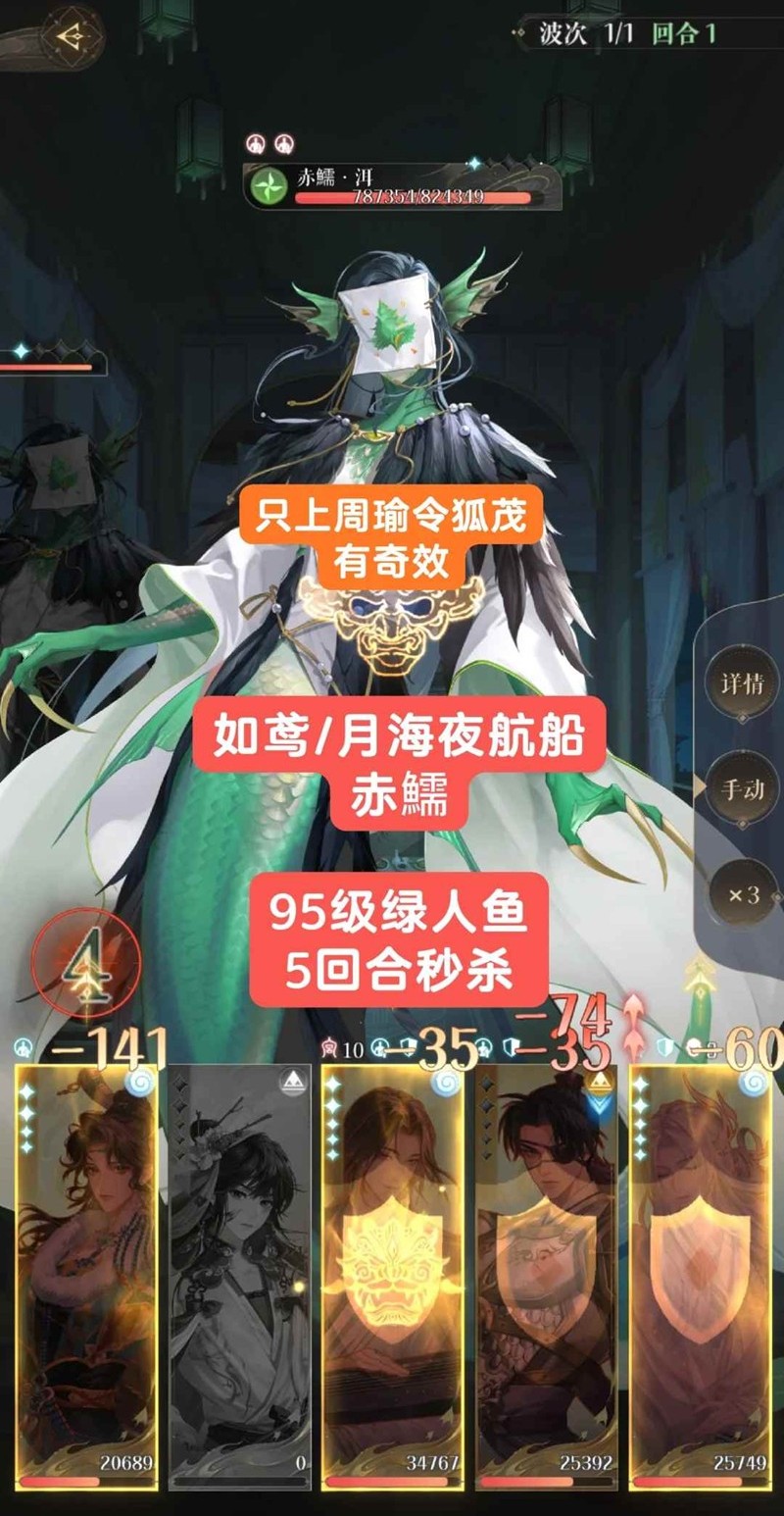 以上就是如鸢月海夜航船95级赤鱬怎么打,洱绿人鱼5回合秒杀攻略的全部内容了,更多游戏资讯,攻略内容敬请关注切游网,您的支持是我们努力的动力!
