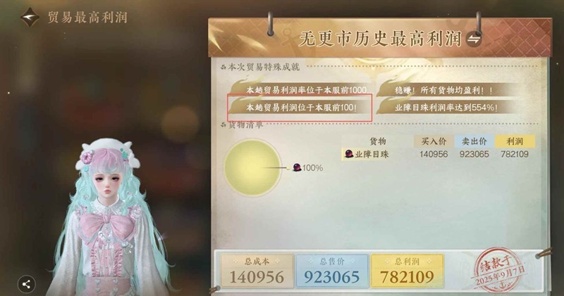结款页面会显示此贸易利润是否在区服前100,卖完发现排名利润没有在前100可以去身份放弃任务,活力会返还,重新接取任务等待行情刷新或来回刷掷骰大成功