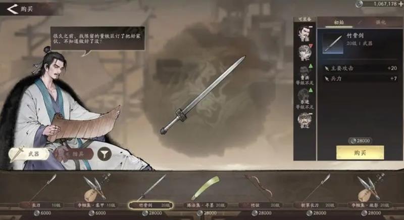 玩家需要不断提升剧本等级,当达到20、30、35、40、45级时,可以在主界面点击建筑总览,选择工坊建筑进行升级。工坊升级后,商店中出售的装备等级也会相应提高。购买装备是最直接的方式,选中的装备可以直接装备到主将身上,立即提升战斗力。