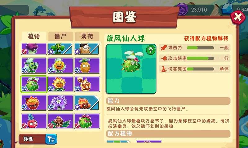 旋风仙人球由三叶草和仙人球融合而来,不仅能攻击地面敌人,还能飞至空中击破气球,让气球僵尸掉落至地面。它会优先攻击空中敌人,有效防止飞行单位绕过防线。这种植物在防空方面表现尤为突出,是应对空袭的重要选择。