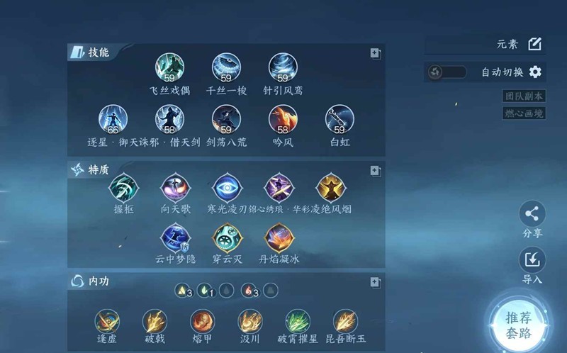 特质:元素流特质没有任何改动,照抄即可。(龙吟小特质狂霆 跟 寒光基本没啥差距,带哪个都行)