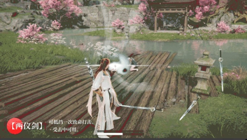 两仪剑护体是无尘的反制技能,通过运转阴阳之气召唤五把飞剑环绕周身,并进入短暂的霸体状态。飞剑会根据敌人的攻击方式选择反击或主动破碎,对敌人造成精准打击。当敌人正面攻击时,无尘会瞬间出现在对方身后进行反击,这个技能提供了全方位的保护和高额的反制伤害。