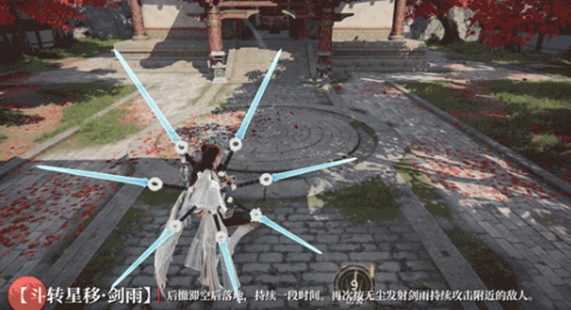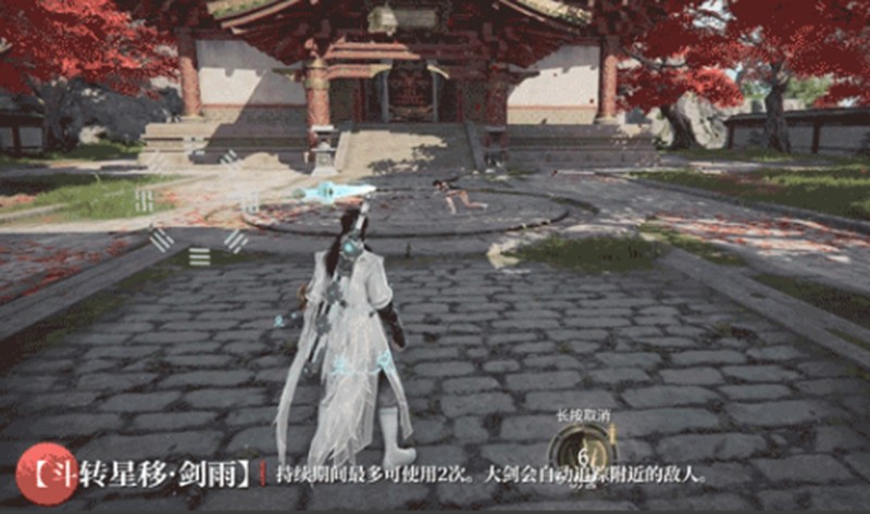 斗转星移剑雨是无尘的爆发型奥义,通过挥剑如雨、化气为刃的方式后撤滞空,飞剑会化作剑雨持续攻击敌人。小剑可以破坏敌人的武器,大剑则会精准追踪目标。当气力提升到金色阶段时,剑雨的终结一击会在敌人头顶降下金色飞剑,形成强力的空中制裁效果。这个技能在追击敌人或清理战场时都非常有效。