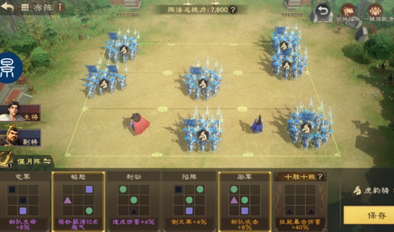 将曹操和郭嘉放在一起,可以激活10胜10败的羁绊,提升40%的技能爆炸伤害,并且获得一个暴力 Buff。兵种方面推荐虎豹骑或禁军,前者能够冲锋击飞敌人,同时增加5%的技能暴击率,后者则能延长控制时间,让敌方无法动弹。双龙阵的布局可以让曹操与郭嘉叠加暴击伤害,使输出效果翻倍。