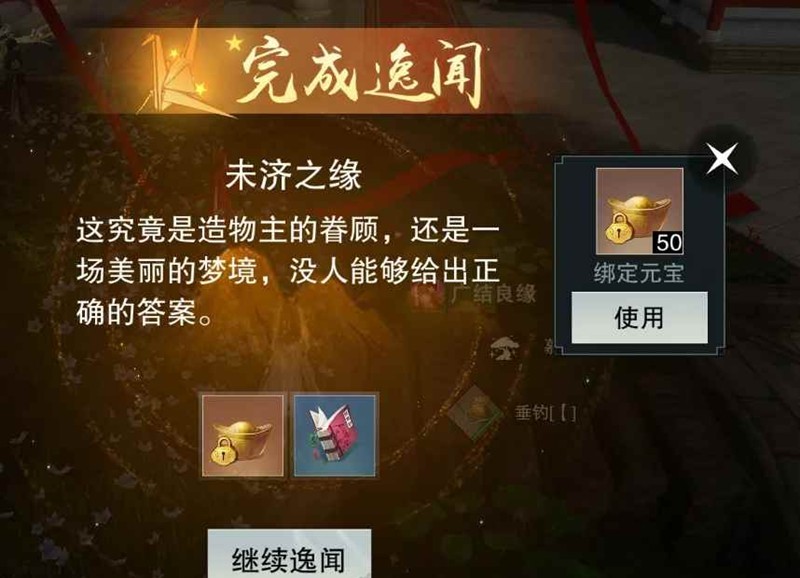 步骤二:选择“西域”地图,逸闻需按顺序解锁剧情~先做前置任务「未济之缘」,完成直接拿 50 绑元