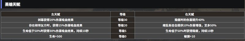 黑骑士拥有影之力效果,通过击杀敌人来刷新隐匿状态,在此状态下还能提升攻速,这让他的收割能力非常强。同时,天赋系统中左侧天赋可以提升生存强化和吸血效果,从基础20%到残血时的30%,配合暗影套装的生命偷取属性,让黑骑士在战斗中具备一定的续航能力。
