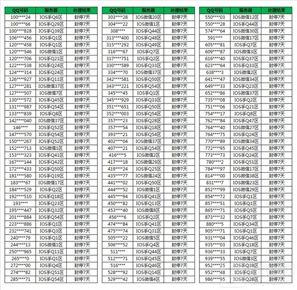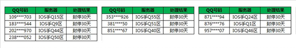 我们将根据这批游戏账号,使用第三方代充的情节严重情况,分别处以封停7天、1个月、1年、10年以及永久的处理。
