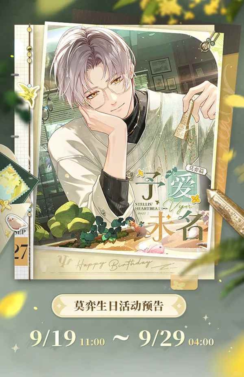 以上就是《未定事件簿》莫弈生日活动「予爱未名·莫弈篇」9月19日开启的全部内容了,更多游戏资讯,攻略内容敬请关注切游网,您的支持是我们努力的动力!
