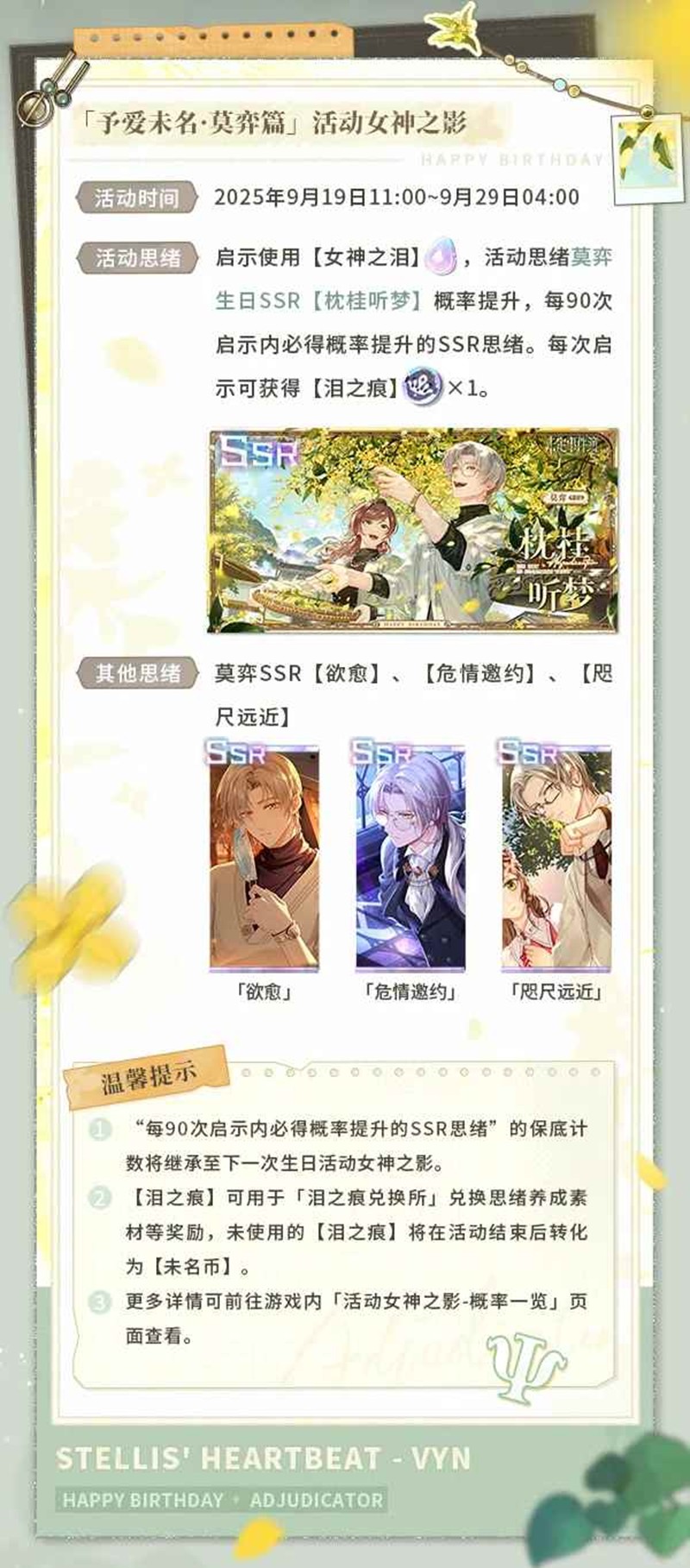 -活动思绪:莫弈生日SSR【枕桂听梦】概率提升,每90次启示内必得概率提升的SSR思绪
