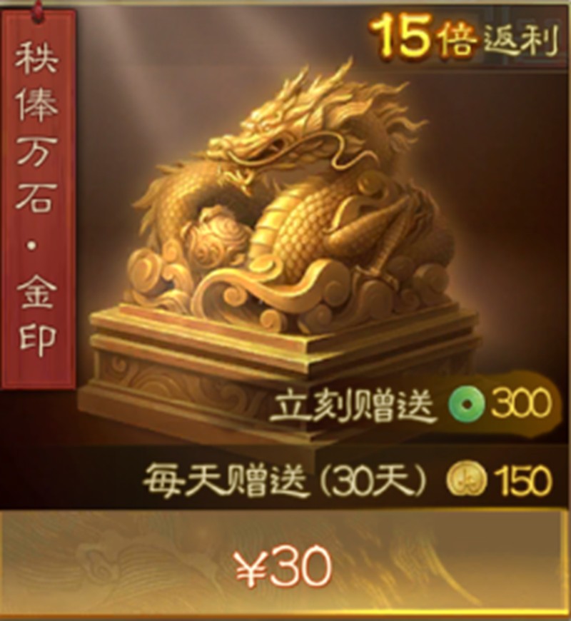 金印月卡是三国志战棋版中较高档位的月卡选项,价格为30元,持续时间为30天。购买后可立即获得300玉璧,相当于首充即回本一部分。除此之外,金印月卡还提供高达15倍的返利比例,这在当前无其他充值活动的情况下显得尤为划算。每天还可领取150金铢,累计30天可获得4500金铢,对于需要大量资源发展的玩家来说,这一收益非常可观。