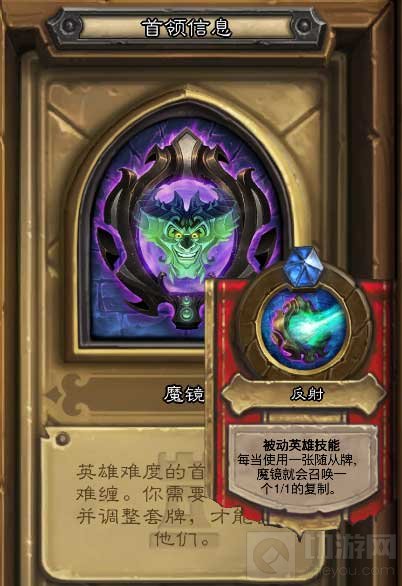 英雄难度:30生命 技能:被动,每当一个随从被召唤,则魔镜召唤一个1/1的复制品