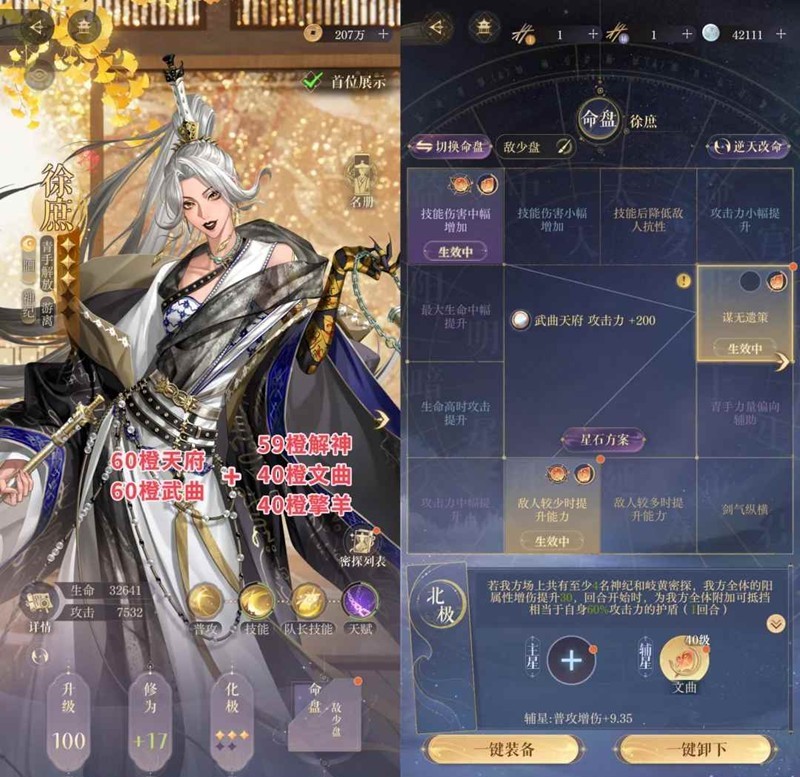 1. 徐庶最少是二星有魅惑天赋,否则可能会对不上回合需要自行调整手法