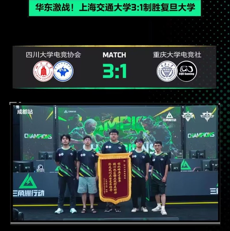 四川大学电竞协会以3:1的成绩力压重庆大学电竞社,华西对决中四川大学电竞协会展现了出色的表现。