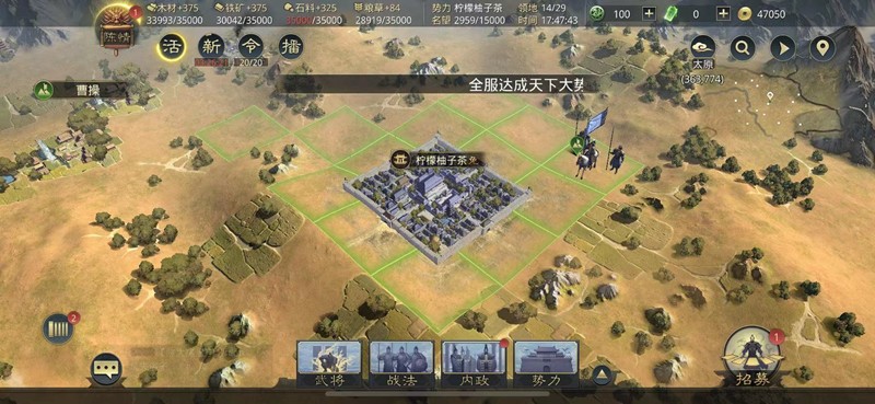 完成任务获取名望,是提升个人势力的另一重要途径。率土之滨设有丰富的日常、主线与活动任务,其中部分任务奖励包含名望值。每积累100点名望,玩家即可解锁一块新的可占领土地。通过不断完成任务提升名望,不仅能拓展领土范围,还能增加资源产地,形成良性循环。占领更多土地后,资源产出提升,反过来又能支持武将培养与城建升级,进一步拉高个人势力值。