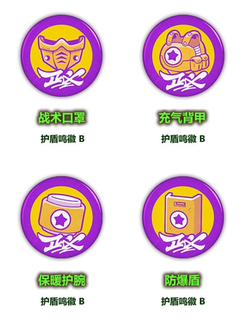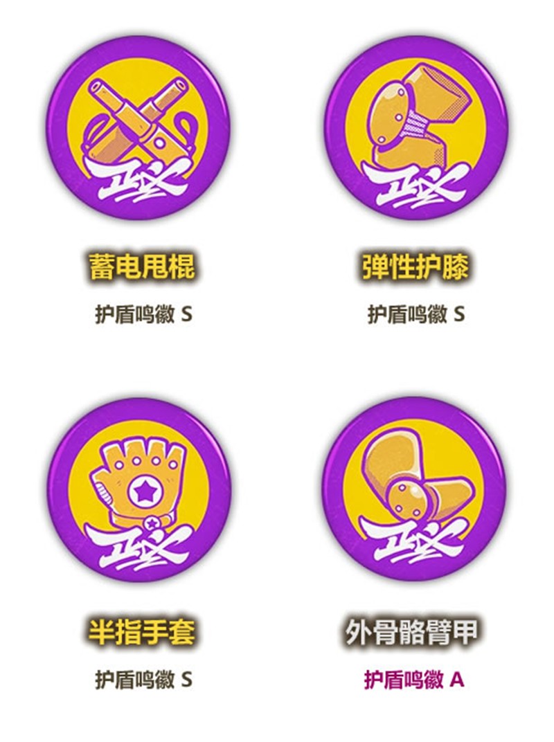 B级护盾鸣徽共包含四类。战术口罩在角色触发极限闪避后生成一个持续5秒、与生命上限相关的临时护盾,适合操作灵活、常使用闪避机制的角色。充气背甲直接提升全队成员的防御力,虽不直接生成护盾,但能降低实际受到的伤害,间接提升生存能力。保暖护腕在角色生命值低于25%时受到攻击会触发一次护盾,持续10秒且数值与生命上限挂钩,每场战斗仅生效一次,属于危急时刻的保命手段。这些B级护盾鸣徽虽然强度不及高阶款式,但在前期或特定配队中仍具实用价值。