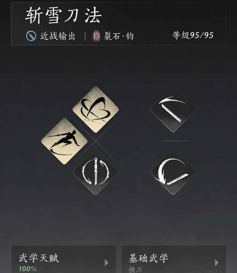 横刀,斩雪刀法,先特殊技一次获得热血难凉buff,再武学技两段(按第一下会出现感知技,再按一下即可)