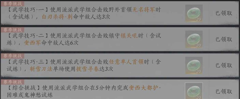 燕云十六声游戏中会有多种不同的玩法风格,如剑术、武技、甚至是太极等,在游戏中完成流派挑战可以获得大量奖励。那么如何快速完成裂石均的流派挑战获得奖励呢?小编为你准备了一份攻略,一起来看看吧~