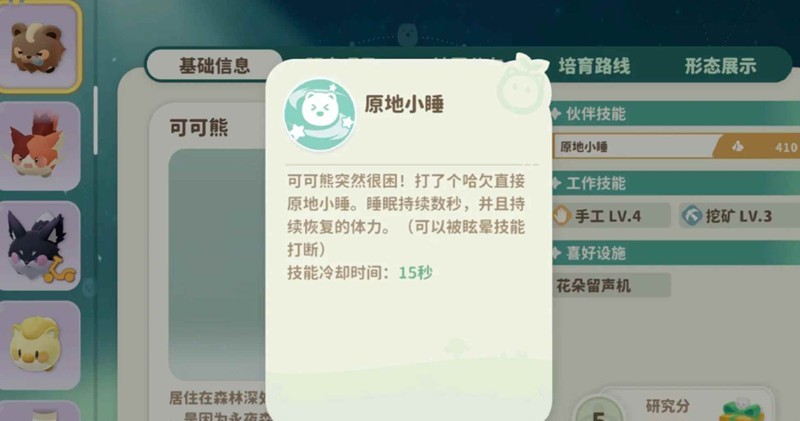 而【可可熊】的技能是原地睡觉恢复生命(可被控制打断)
