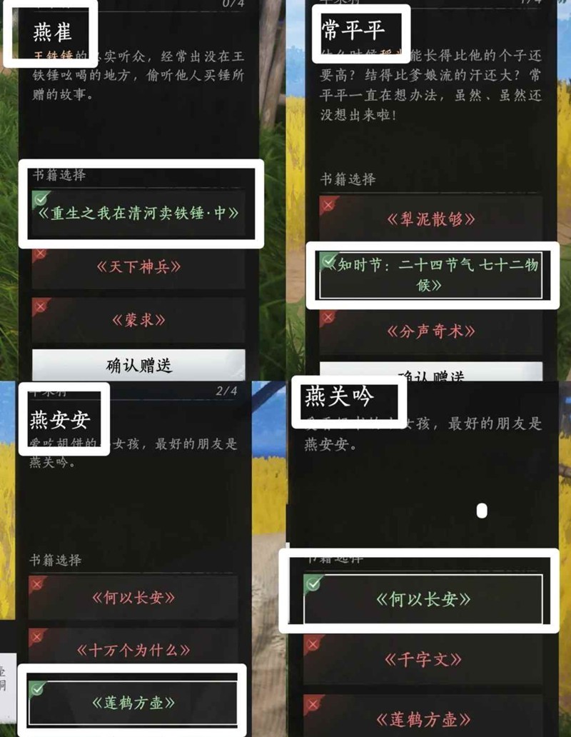 燕崔《重生之我在清河卖铁锤》,常平平-《知时节:二十四节气,七十二物候》,燕安安-《莲鹤方壶》,燕关吟-《何以长安》。
