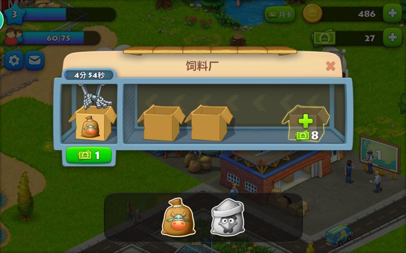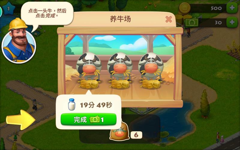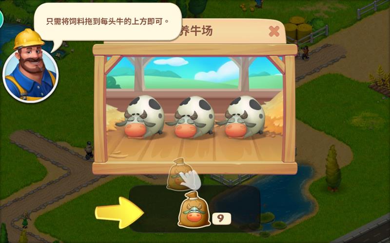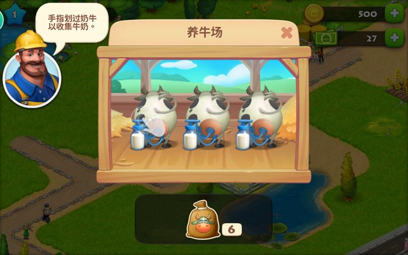 产出完成后可以继续喂养,产出的牛奶可以通过滑动屏幕收集。饲料需要通过建造饲料厂来生产,这样才能保证养殖业的持续运作。