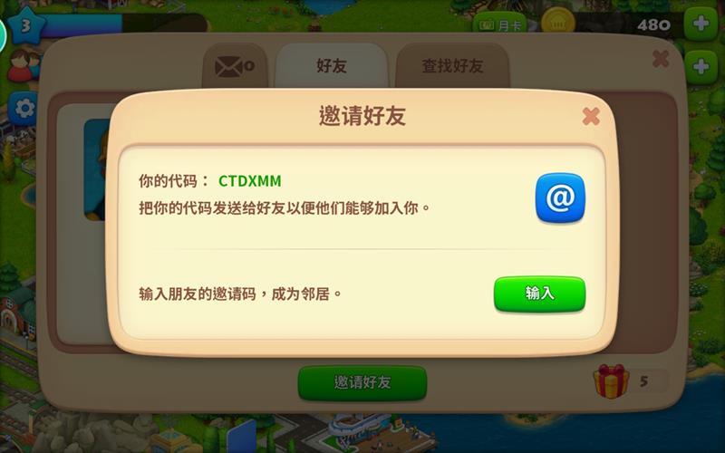 如果想和好友一起游玩,可以点击主界面左下角的双人图标,这里提供两种添加好友的方式:生成自己的游戏代码分享给好友,或者通过查找好友功能直接邀请其他玩家。