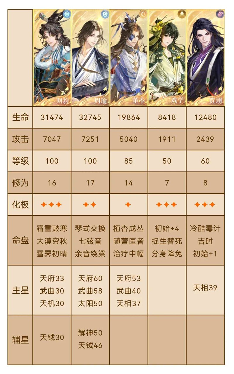通关思路:戏学第一回合对张修开大,董奉全程先手平a分身,其他人攻击分身或选择防御,(建议有大开大),
