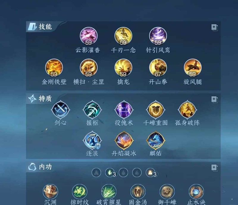 剑心+握枢+役魂术+千障+孤身+逐浪