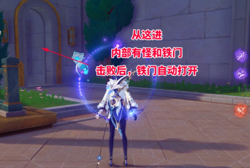 要找到原神电梯间隐藏宝箱,首先需要传送到须弥城附近的王城区域。进入王城后,寻找名为星间庭院的位置,这个地点位于城堡中部偏上的平台区域。到达星间庭院后,沿着平台边缘前行,靠近栏杆处选择跳跃下落。这一跳看似危险,实则通往隐藏路径。下落后会看到一个不起眼的圆形拱门结构,进入后即可触发后续机关流程。