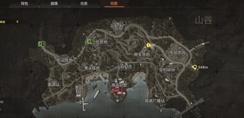 西部区域包含港口、雷达站和前沿战地三个主要资源点,整体物资丰富,适合中后期搜刮。中部区域的小型工厂、山谷村庄和海滨别墅则是兵家必争之地,尤其是海滨别墅建筑密集,房间众多,极易埋伏敌人。东部区域的皮诺广播站、坠机峡谷与东部农园相对偏远,但资源稳定,适合选择冷门路线的玩家深入探索。不同区域之间的转移需结合地图路径与撤离点位置进行规划。