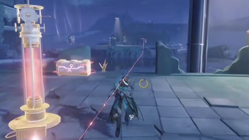 在鸣潮的焚焰海地图中,这个被封锁的宝箱位于一处较为隐蔽的位置,周围环境以岩浆与高温地貌为主。玩家靠近后会发现宝箱被能量封锁,无法直接互动。想要开启它,必须激活角色的感知能力。开启感知后,视野中会出现三条延伸出去的红色光线,这些光线分别连接着三个不同的机械装置。只有将这三个装置全部破解,才能解除宝箱的封印。