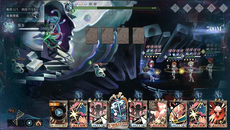 特别的机制:每关中途会有一回合牌是不给看牌面的,可以通过牌型和出牌时哪个角色在动判断是什么牌,凹两遍基本就能判断是哪个回合了,我一般邪修直接提前截图();最后一关 1.2号位有一回合会睡着,所以c放3.4,我怕s又放的奶