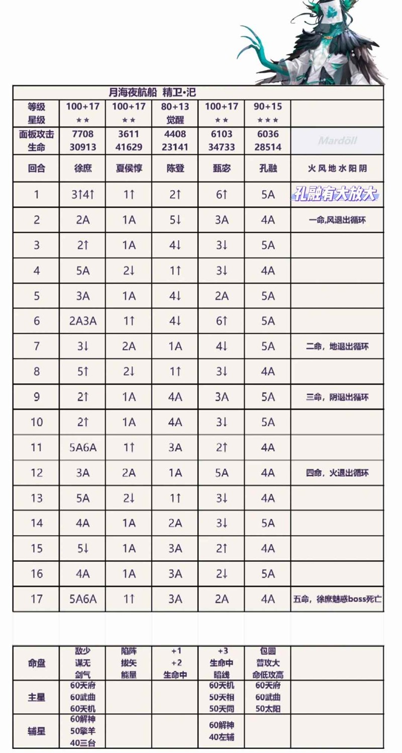 徐庶星石全卸,张邈辅星全卸,没用贾诩就是为了减少徐庶伤害,严白虎可以换任意一个阴系,最好不要大c。半血进一折boss会给自己扣血,一次46w, 扣完了全体退场。在boss二格能量时进入一折,孔融攻击给boss加血,二折boss给自己回血,再次控血量到两回合可以打掉的程度,三折结束让张邈击杀boss