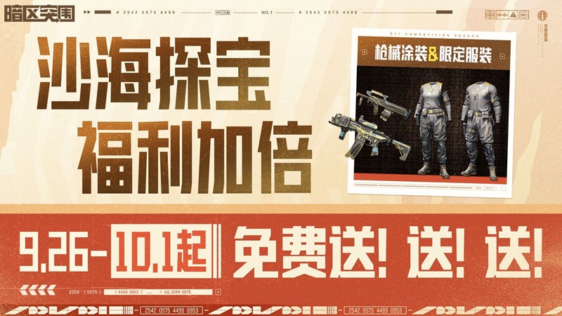 暗区突围备受瞩目的“沙海探宝”福利狂欢活动第二弹即将拉开帷幕,海量惊喜福利正向你招手,10月1日起登录就送限定外观!快来一起看看都有哪些不容错过的精彩内容吧!
