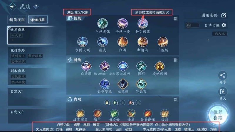 必带内功:熔甲 昆吾 破霄(其他内功根据词条元素选择即可 点内功小问号查看收益)