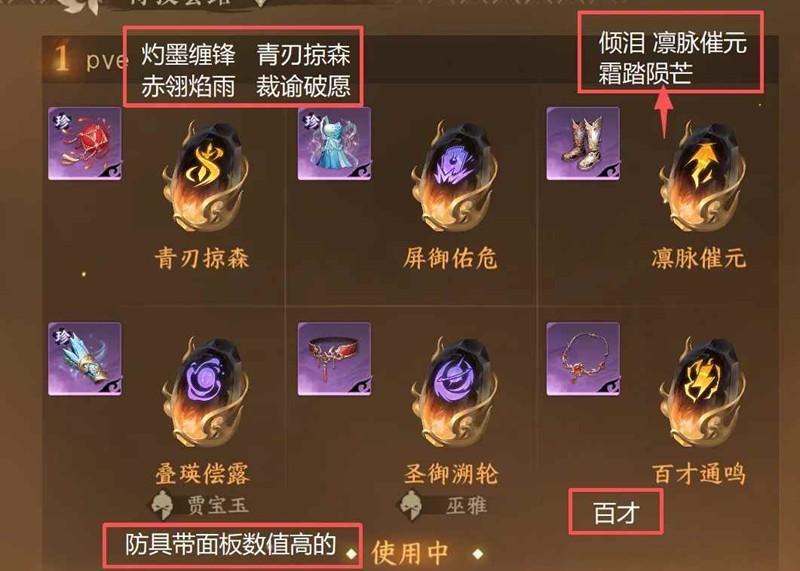 防具:防具随便打三个数值高的即可