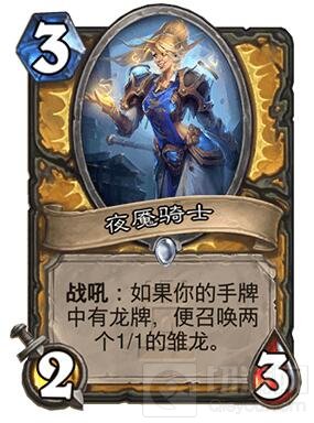 tips:关于323夜魇骑士这张卡的。我试来试去都觉得这卡不是特别厉害,唯一的亮点之处在于可以配合公正之剑和铜须来使用。配合公正之剑可以瞬间造两个22和一个34出来,但是前期想做这个套路必需使用硬币,所以不是特别好用。而且龙骑士带公正之剑,真的好尴尬。而配合铜须可以6费瞬间铺满整个场面,非常的震撼,但是问题也很明显,铺满了又有什么用呢,在一个龙系骑士套路里,铺场是没有跳费重要的,又何况骑士的站场收益那么低。
