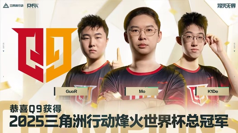 再次恭喜Q9战队获得2025《三角洲行动》烽火世界杯全球总冠军!恭喜Mo荣获FMVP!