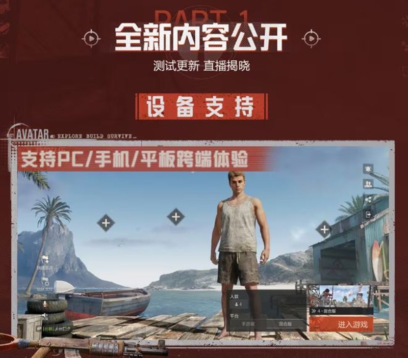 本次直播看点颇多,策划将现场答疑,为玩家们带来最新情报,包括本次登岛测试的新内容。比如,玩家关心的PC和移动设备能否一起匹配、设备能否稳定60帧、反作弊系统是否足够强大等问题,都将在直播中得到解答。