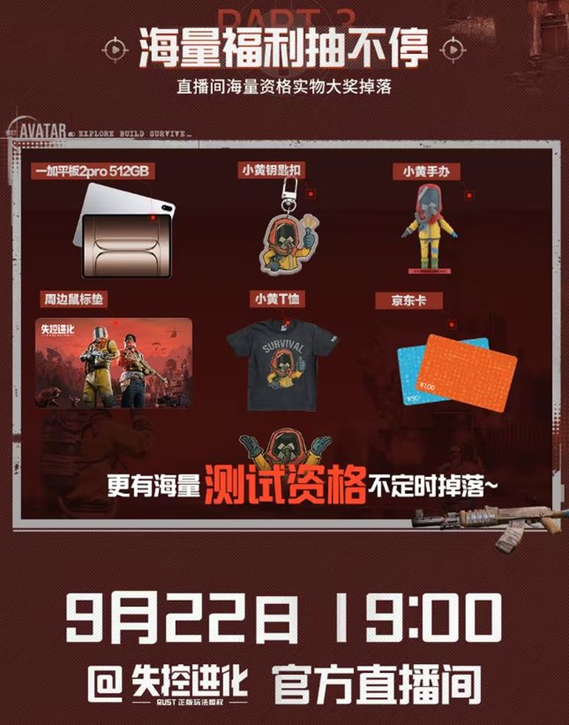 失控进化作为一款备受期待的开放世界生存冒险游戏,其独特的玩法和创新的进化机制一直吸引着众多玩家的目光。本次登岛测试,玩家将有机会率先体验到游戏的最新内容。无论你是想了解游戏的最新动态,还是想获取测试资格和福利,都不要错过今晚19:00的直播。