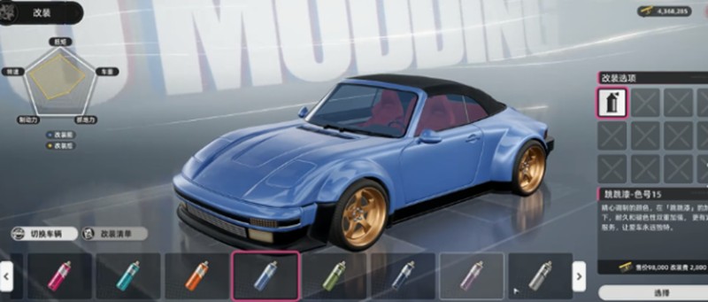 外观改装是大多数玩家最先接触的部分。在异环中,你可以自由更改车身颜色,系统提供了多种色号选择,包括低调黑、亮颜粉、金属灰、电光蓝等风格迥异的配色方案。选定颜色后点击确认,并支付相应费用即可完成换色。此外,还能为车辆添加涂鸦图案,自定义车体拉花,进一步提升辨识度。前唇、后护板、侧裙等部件也可更换,搭配一个炫酷的鲨鱼尾翼,整车的视觉冲击力将大幅提升。