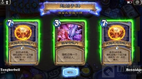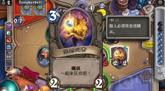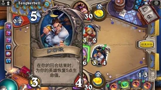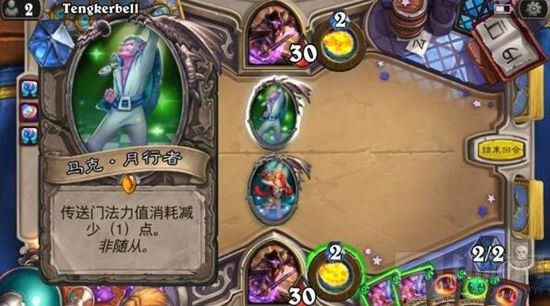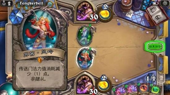 在开场双方各有一个结界,这里暴雪第一次引入了场上结界概念,这个叫风吟牌(传送门费用-1)的将占据你一个场上位置但没有攻防只是产生效果,看来新的套路不久将会出现