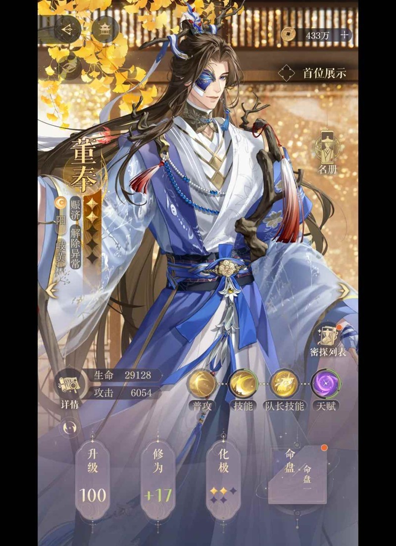 董奉一星应该很够了!我二星董奉实际要控血,星石来回卸了两三次,总结出来图上的一个40级巨门,二星董奉向我对齐就好,一星的多带点星石,只要能在16回合死就好!!!