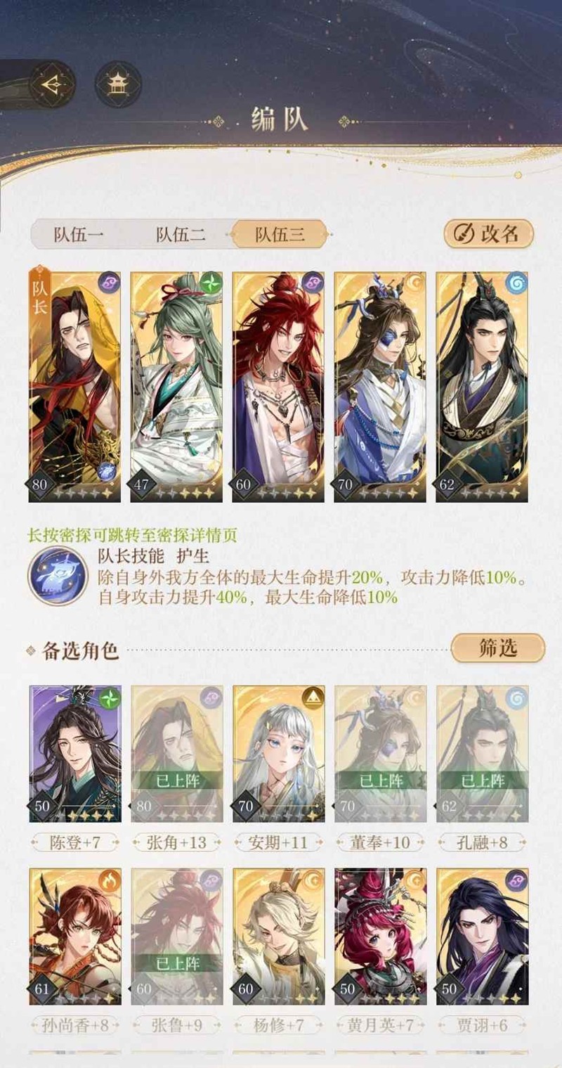 董奉孔融是为了增大血量提高攻击和回血,延缓张鲁的复生频次。(但是到了最后几回合,花呗董不但没法治疗反而在不断降血)