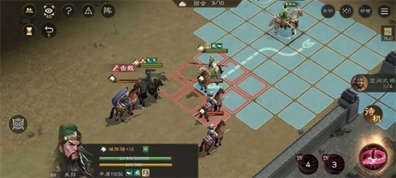 第二回合夏侯惇会作为援军登场,此时应让赵云主动上前迎击敌方主力,利用其高机动性和爆发力打出关键伤害。关羽紧随其后进行补刀或牵制其他敌人,形成前后夹击之势。新三国志曹操传的战斗机制强调回合节奏把控,赵云与关羽的配合能有效打断敌方进攻节奏。