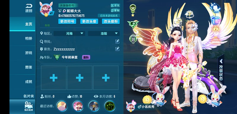 进入QQ飞车手游后,在主界面左上角可以找到自己的头像图标,点击该头像即可进入个人名片页面。这个页面展示了玩家的基本信息以及名片背景等内容,是管理个人形象的重要入口。在这里你可以查看当前使用的名片样式以及已上传的照片。